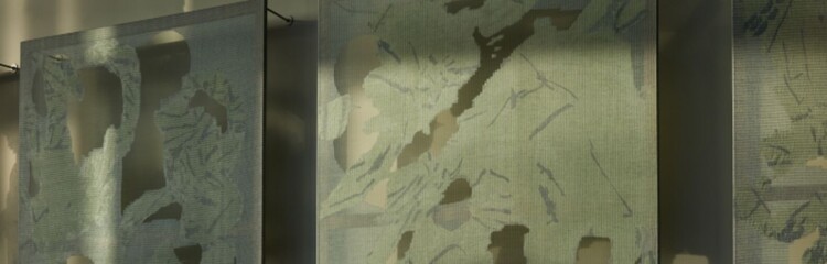 In unserem Hotel hängen ihre Werke in der Lobby, deren durchgehende Glasfassade eine besondere Lichtsituation und Platz für Schattenspiele schafft.