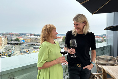 Susan: And it's really impressive. It takes you right into the heart of the city, which is always the intention of our hotels in general. Robert, the hotel manager, described it beautifully: Your art builds a bridge into the city, so to speak - which we have right in front of us up here on our the roof terrace, especially the Prague Towers!